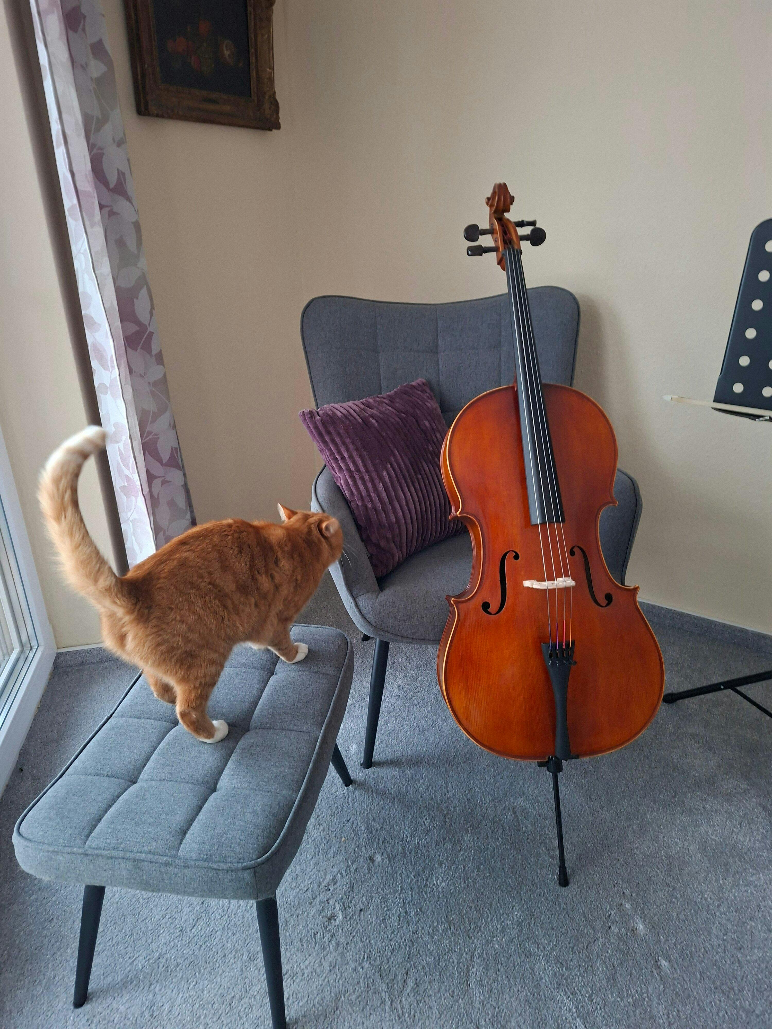 Ich habe vergnügt gekichert, als ich das witzig geformte Haltebrett in Celloform ausgepackt hatte. Mit dem Stimmen der Saiten hatte ich wenig Probleme, der Feinstimmer ist hervorragend. Und der Klang hat mich begeistert: warm volltönend und tragend. Den Gedanken, dass ich dieses Cello wieder verkaufen werde, habe ich gleich fallen gelassen. Es bleibt bei mir...