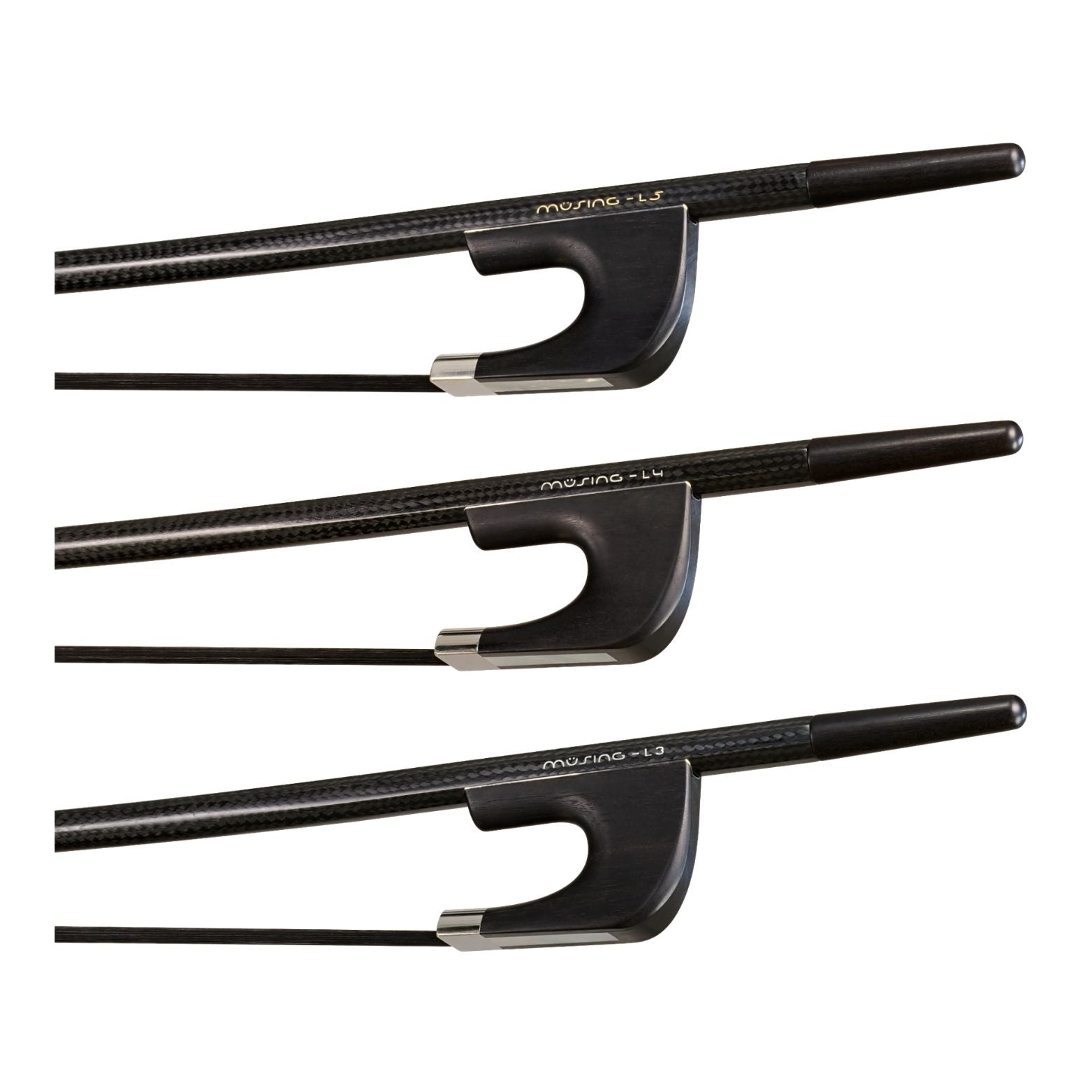 Das jahrelange Forschen und Tüfteln hat sich gelohnt: Mit der Fertigstellung der Müsing-Bassbögen ist ein weiterer Meilenstein geschafft. Ein Müsing-Bassbogen ist wie ein treuer Freund, auf den unter allen Umständen Verlass ist. Er bietet nicht nur einen außergewöhnlich klaren und offenen Klang, sondern auch eine exzellente Ansprache und eine bessere Tragfähigkeit als die meisten herkömmlichen Bögen. Außerdem springt er leicht, lässt sich aber gleichzeitig sehr gut kontrollieren. Die Müsing-Bassbögen sind nahezu unverwüstlich und ihre einzigartige Edelstahlausstattung wird auch in hundert Jahren noch wie neu glänzen.