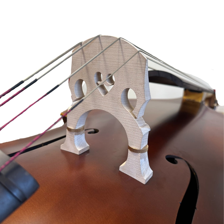 Als Sahnehäubchen zu diesem unschlagbaren Angebot liefern wir einen verstellbaren Steg mit, der den schnellen Umstieg von Arco (gestrichen) auf Pizzicato (gezupft) erlaubt. Zudem können mit diesem Steg Höhenanpassungen vom Sommer zum Winter und umgekehrt vorgenommen werden. Auch ist die angenehme Saitenhöhe manchmal individuell, so dass Sie den Steg immer perfekt auf Ihre Bedürfnisse einstellen können.