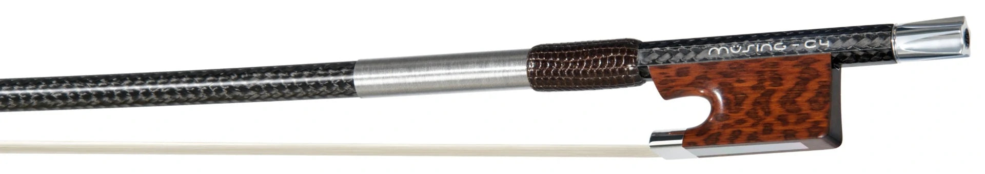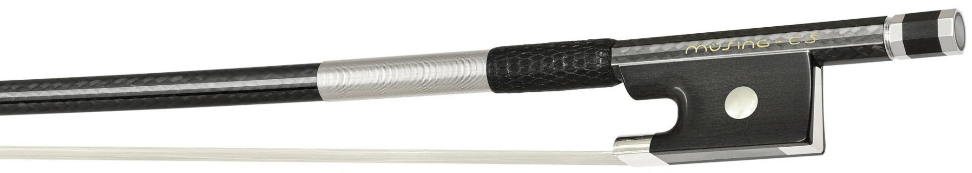 Alle Müsing C-Bögen zeichnen sich durch exzellente Verarbeitung und hochwertige Materialien aus: Von Neusilber und Edelstahl bis hin zu Silber, mit Froschauflagen aus Ebenholz oder Schlangenholz, echtem Perlmutt und äußerst robustem Bezug aus ausgewählten Qualitäts-Haaren.